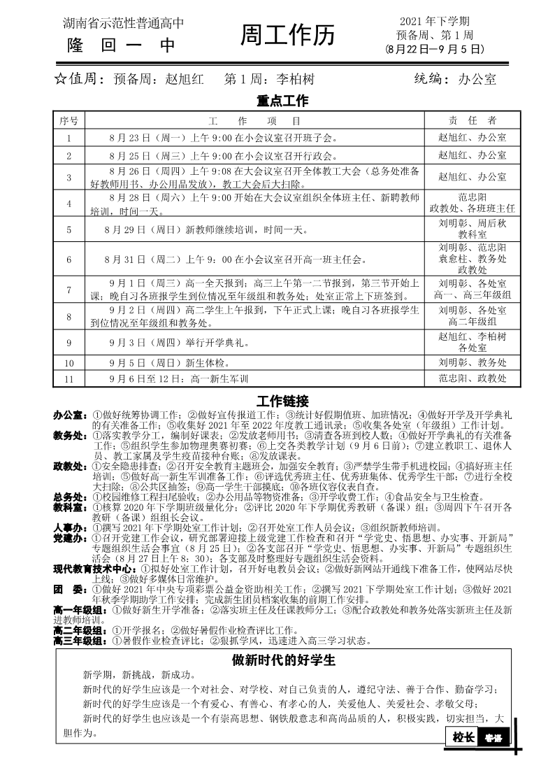 隆回一中2021年下学期预备周、第1周工作历 来源:隆回一中校办 发布时间:2021-08-25 17:48:30 浏览次数: 次 【字体:小 大】 终审:罗玉南 智能标签: 隆回 一中 年下 学期 预备 相关内容 分享到: 【打印正文】
