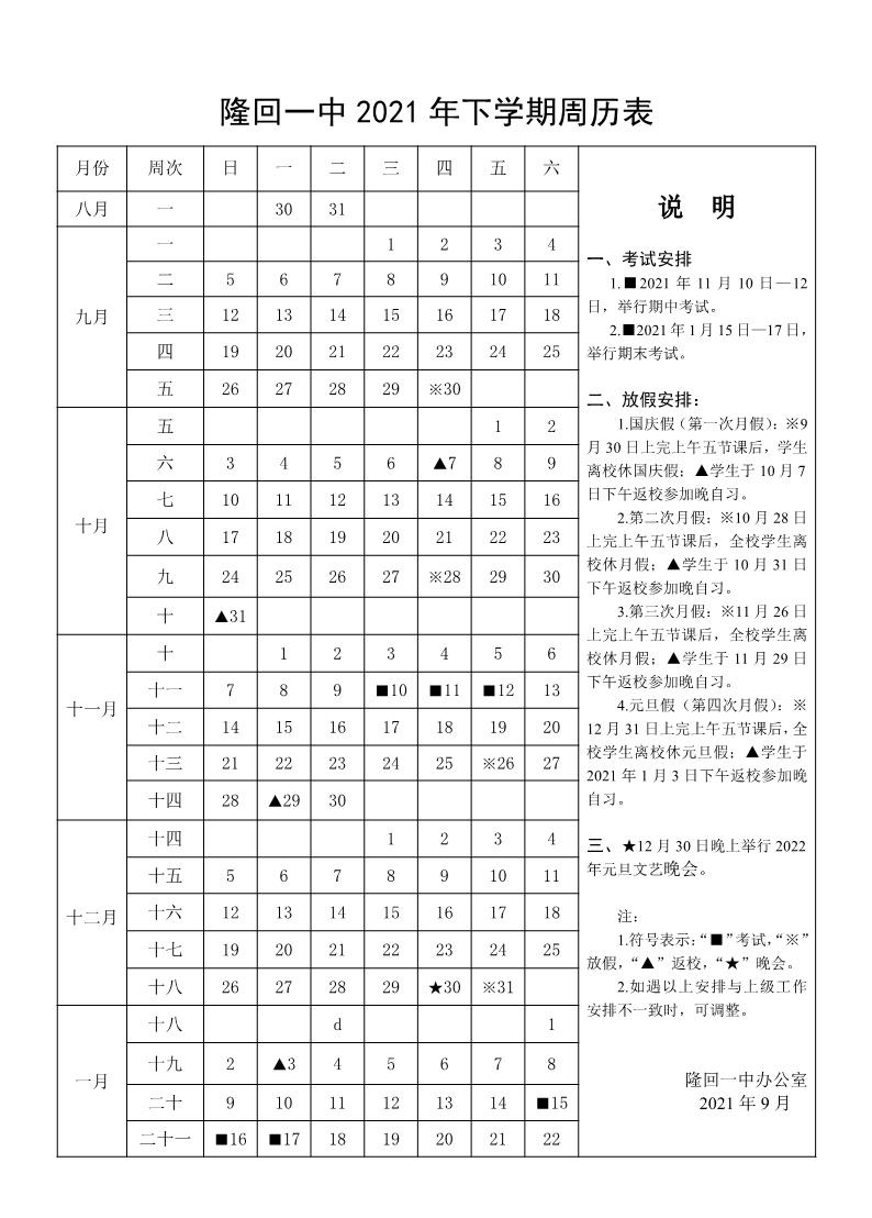 隆回一中2021年下学期周历表 来源:隆回一中校办 发布时间:2021-09-10 08:04:09 浏览次数: 次 【字体:小 大】 终审:罗玉南 智能标签: 隆回 一中 年下 学期 相关内容 分享到: 【打印正文】