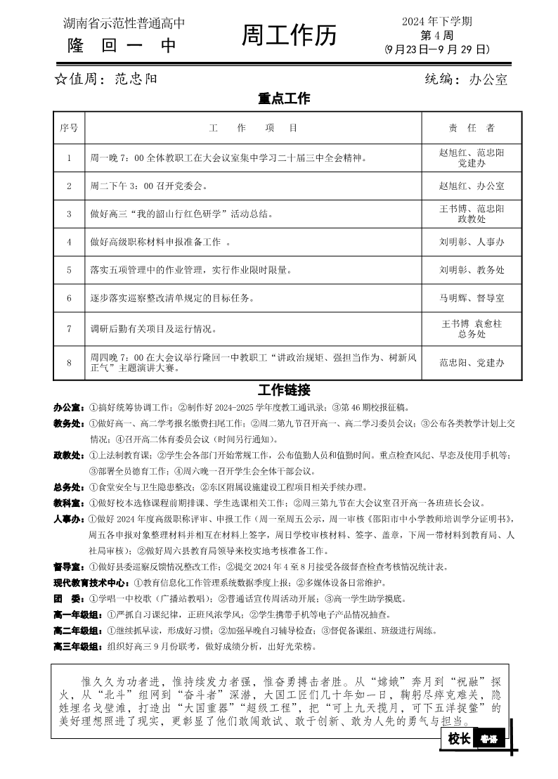 隆回一中2024年下学期第4周周工作历