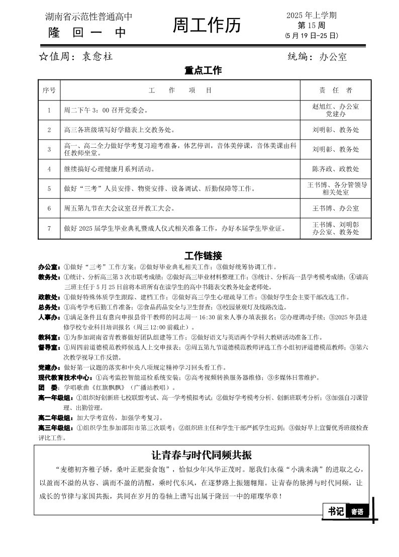 隆回一中2025年上学期第15周周工作历