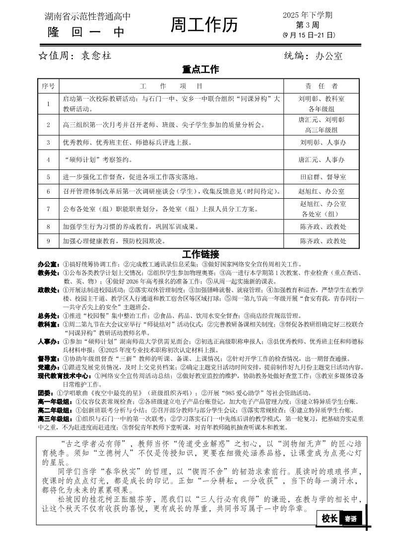 隆回一中2025年下学期第3周工作历